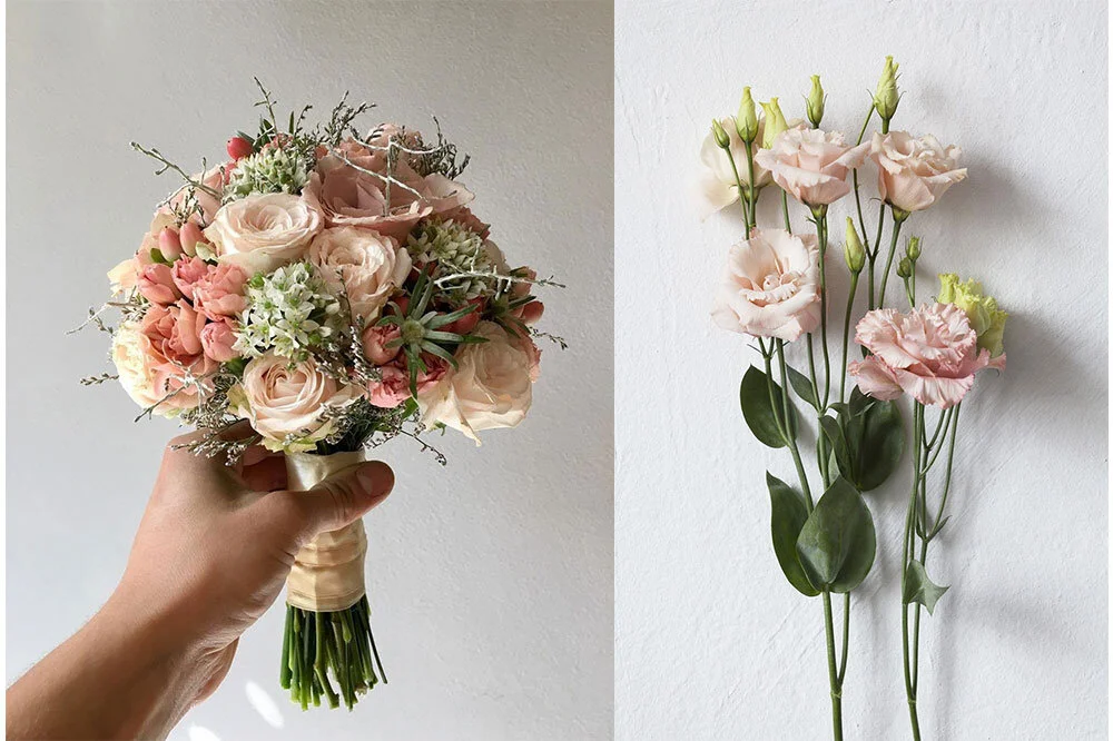 洋桔梗的花語為「不變的愛」,洋桔梗的花型很像玫瑰,色彩的選擇也很豐富,在婚禮中很常跟玫瑰作為主花來搭配新娘捧花,但洋桔梗色彩較為素雅,搭配簡單優雅的婚紗更合適呦。